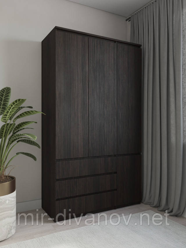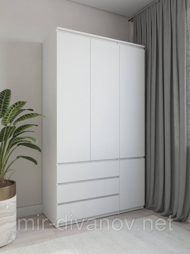 Шафа для одягу зі штангою та трьома ящиками без ручок виготовлена з ламінованого ДСП завтовшки 16 мм